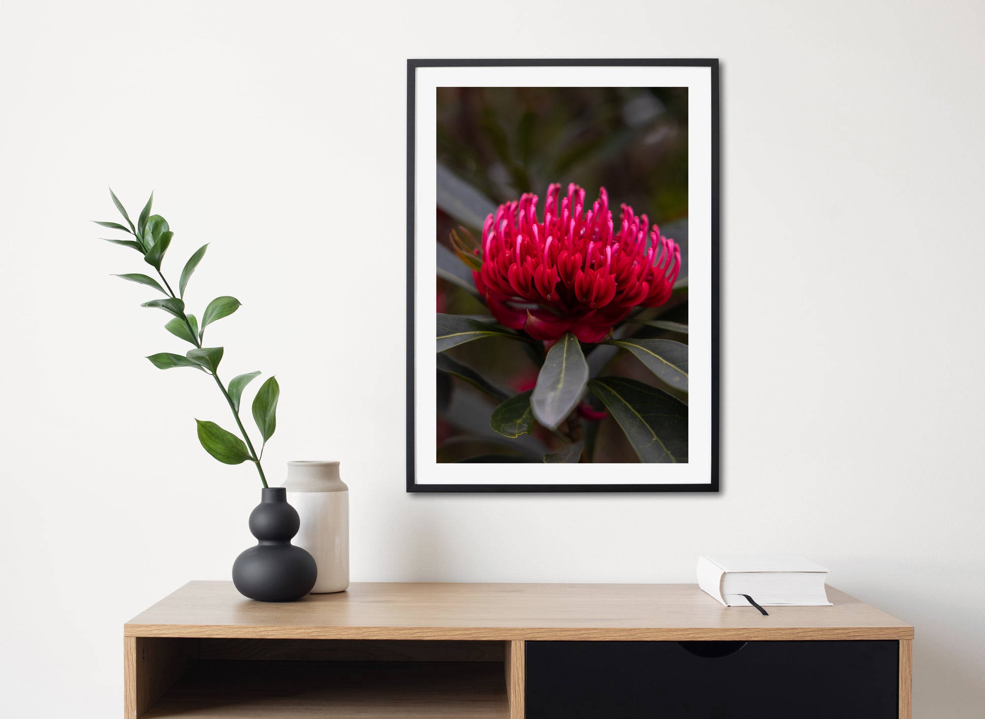 Choose from premium frames in Black, White, or Tasmanian Oak. Prints are framed edge-to-edge (no mat) in a 2cm frame and arrive ready to hang.