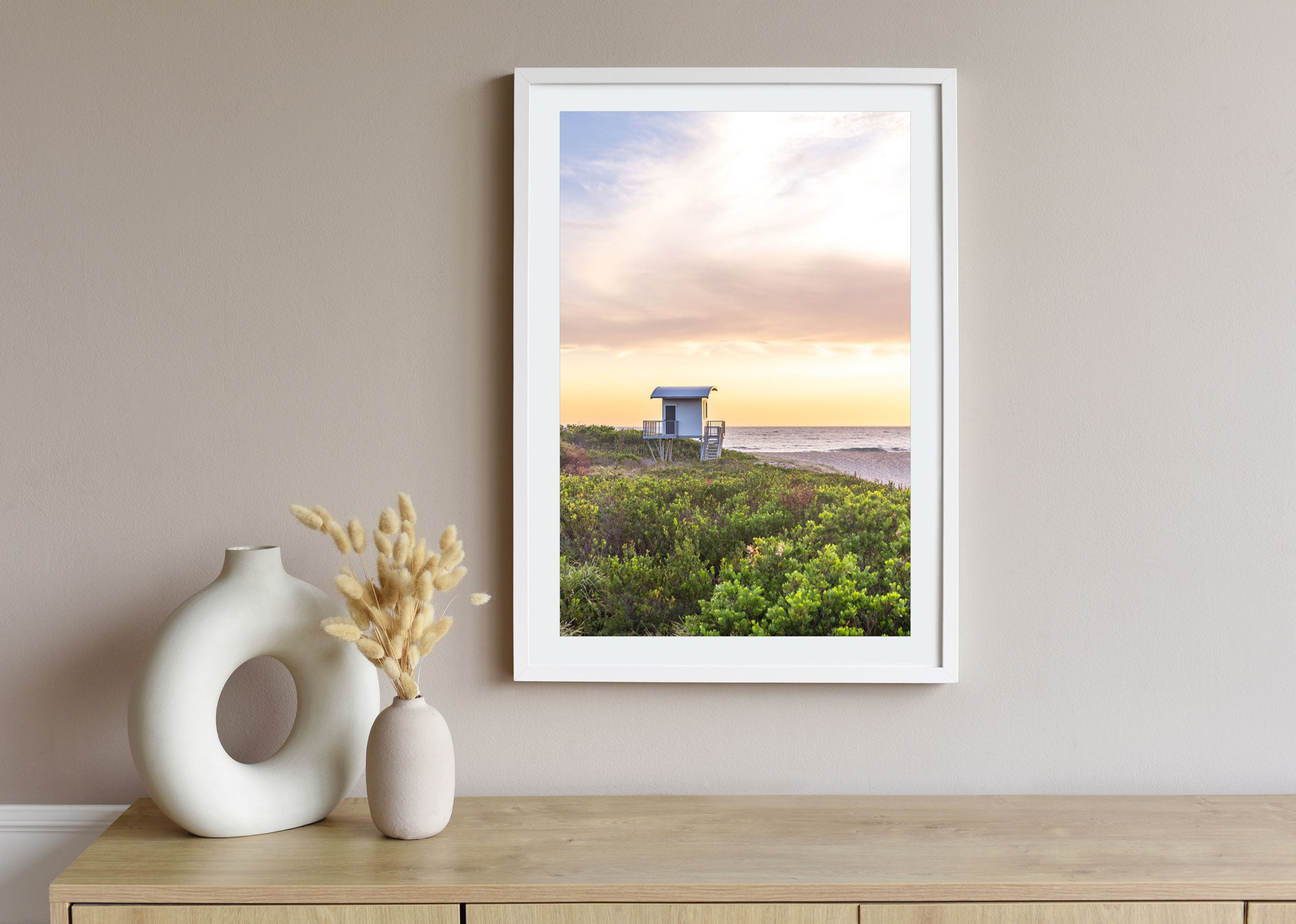 Choose from premium frames in Black, White, or Tasmanian Oak. Prints are framed edge-to-edge (no mat) in a 2cm frame and arrive ready to hang.