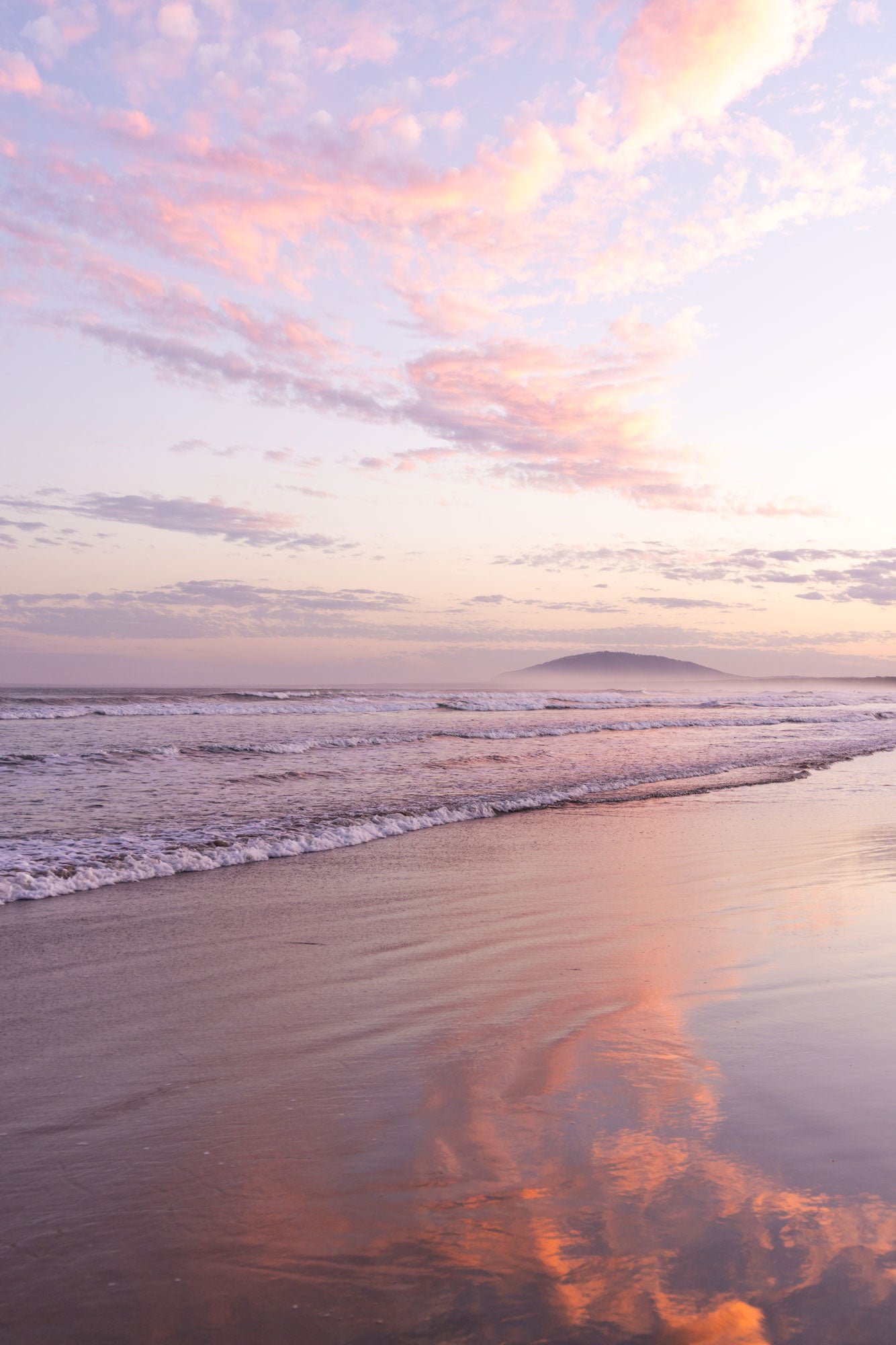 Liquid Light captures a fleeting moment where the sky spills its colors across the shoreline at Gerroa. As the sun dips behind the escarpment, brilliant pink hues melt into the clouds.