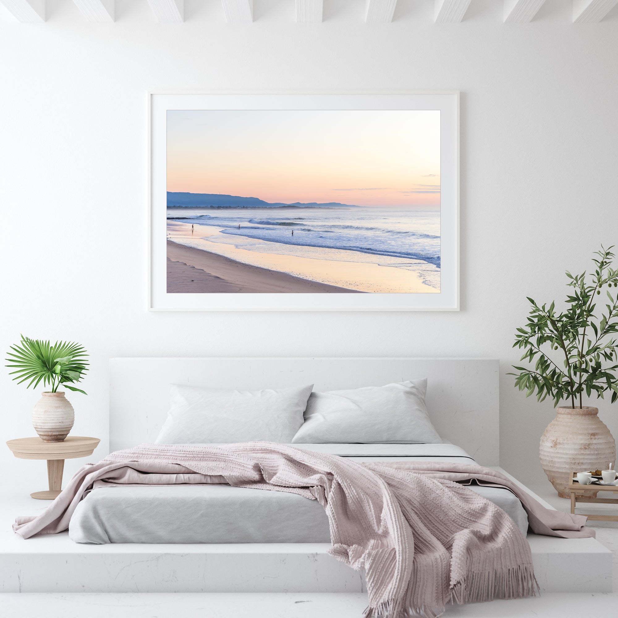 Please note: Our white framed canvases are made from white oak. They have a smooth white finish with a subtle wood grain visible.