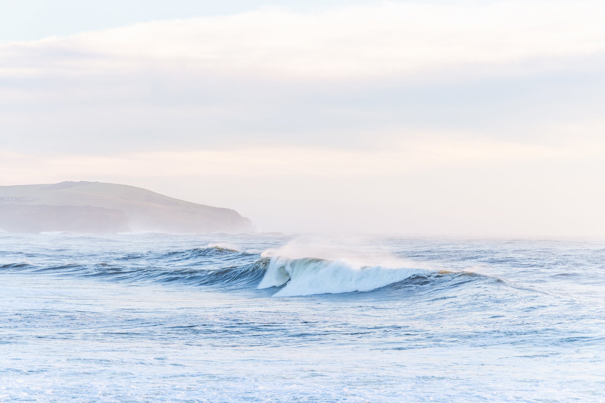 Explore the tranquil beauty of Werri Beach in this captivating photo captured by Belinda. Taken during a hazy sunrise morning, the image captures a serene moment amidst the powerful swell crashing onto the coast. Surrounded by peaceful pastel hues, it provides a calming contrast to the rough sea.