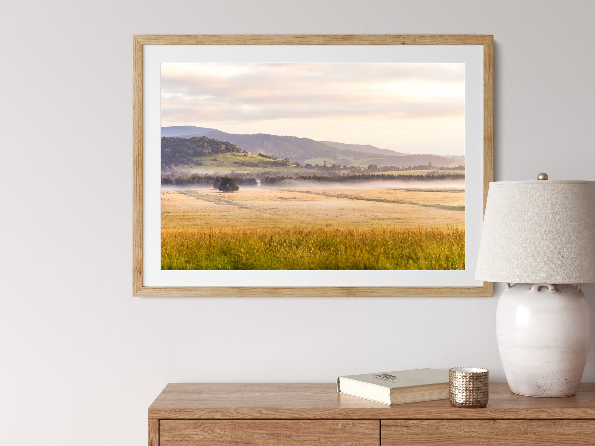 Choose from premium frames in Black, White, or Tasmanian Oak. Prints are framed edge-to-edge (no mat) in a 2cm frame and arrive ready to hang.