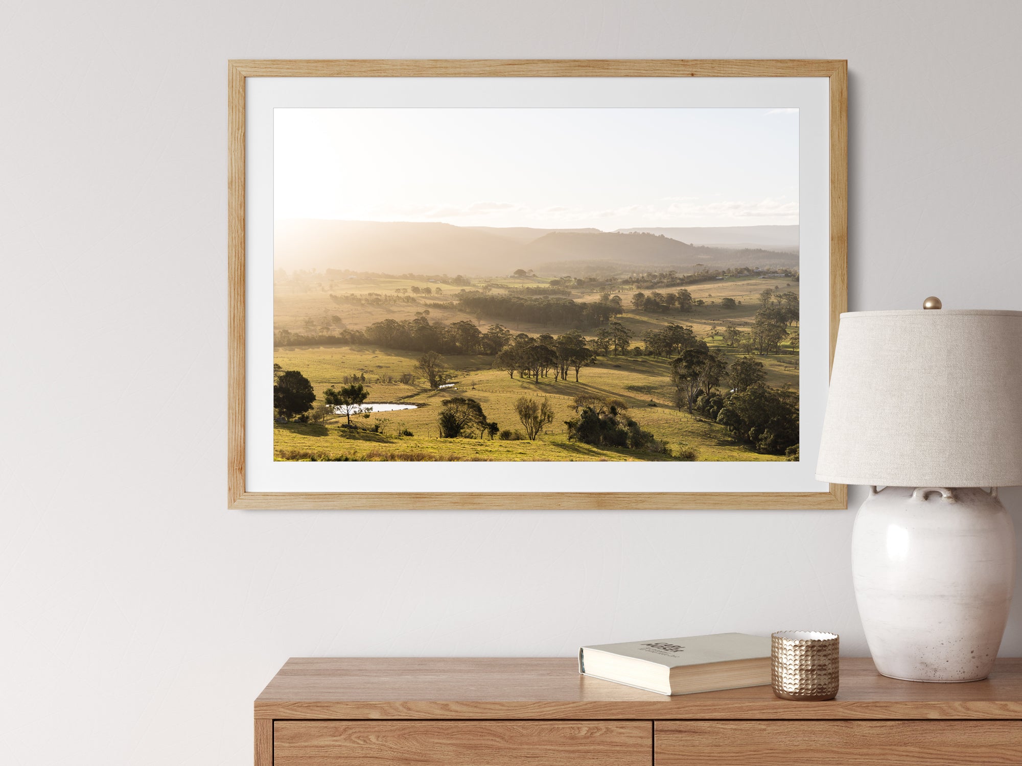 Each print includes a 50mm acid-free white mat and is available in White, Black, or Tasmanian Oak frames. All are ready to hang with clear glass and secure hanging wire.